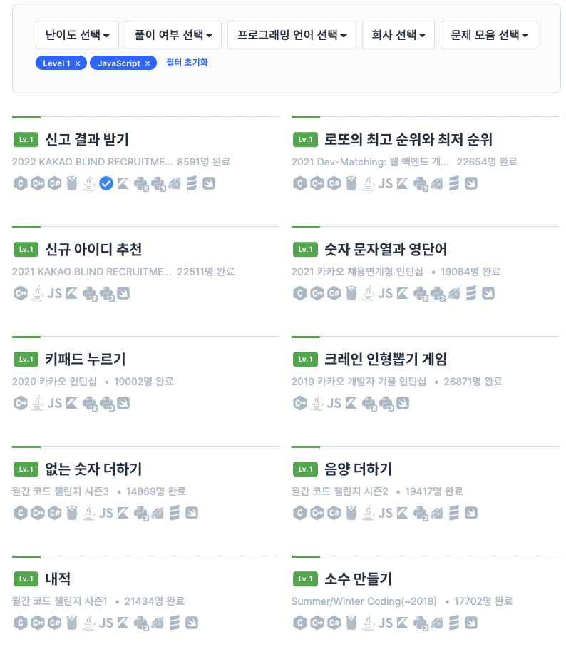 언어는 js로 통일하고 매일 프로그래머스에서 1문제 씩 풀기로 했다.